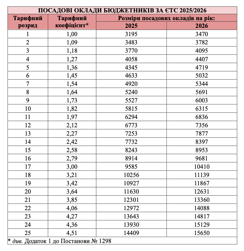 Єдина тарифна сітка на 2025/2026 рік: таблиця бюджетної сфери⤵️