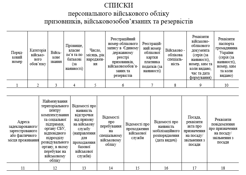Списки персонального військового обліку призовників, військовозобов’язаних та резервістів