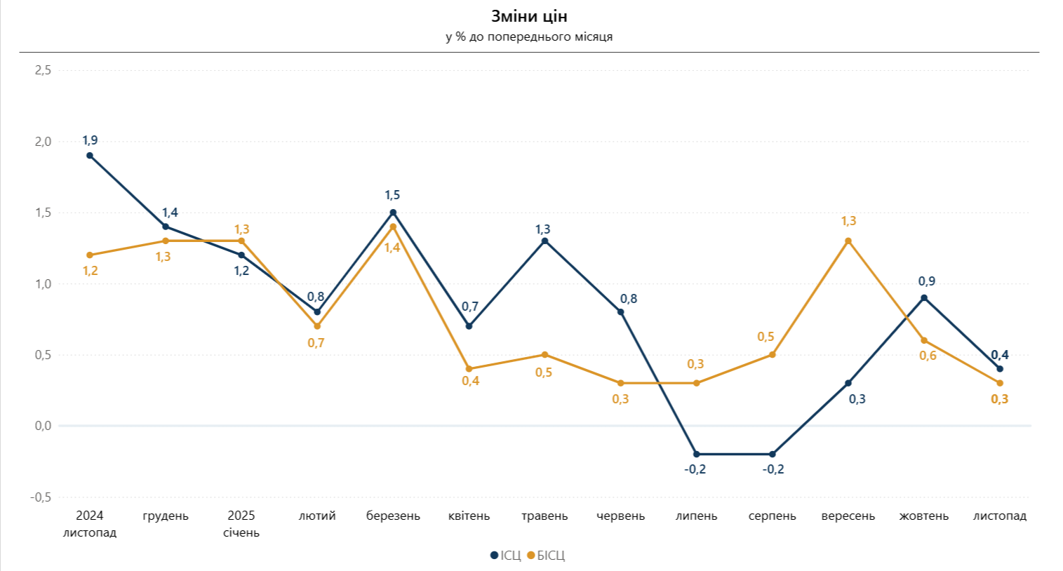 Індекс інфляції за листопад 2025 — 100,4%: Держстат